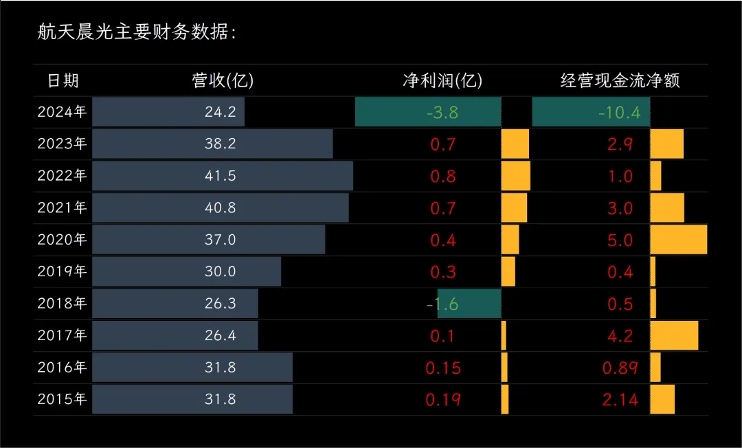 航天晨光2024年实现营收24.2亿元,同比下降37%,核心原因是过去撑起半壁江山的核工装备大单进入收尾期,新的同类项目没接上;军品采购计划推迟,后勤保障装备订单落空;环保装备又碰上行业杀价,三块业务同时掉链子,收入一下子掉下去。