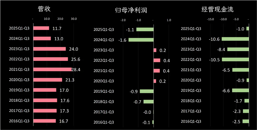 现金流更紧张,销售回款周期拉长,应收账款多出来7个亿,经营现金流全年净流出10.4亿元,几乎就是一夜回到解放前。