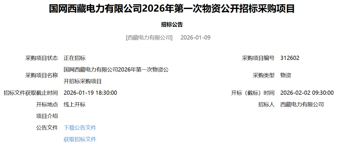 国网西藏电力有限公司2026年第一次物资公开招标采购项目