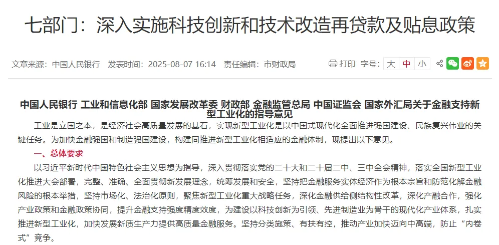 从国家层面看,2025年8月七部门联合发布《关于金融支持新型工业化的指导意见》,为到2027年的金融支持设定了明确框架。