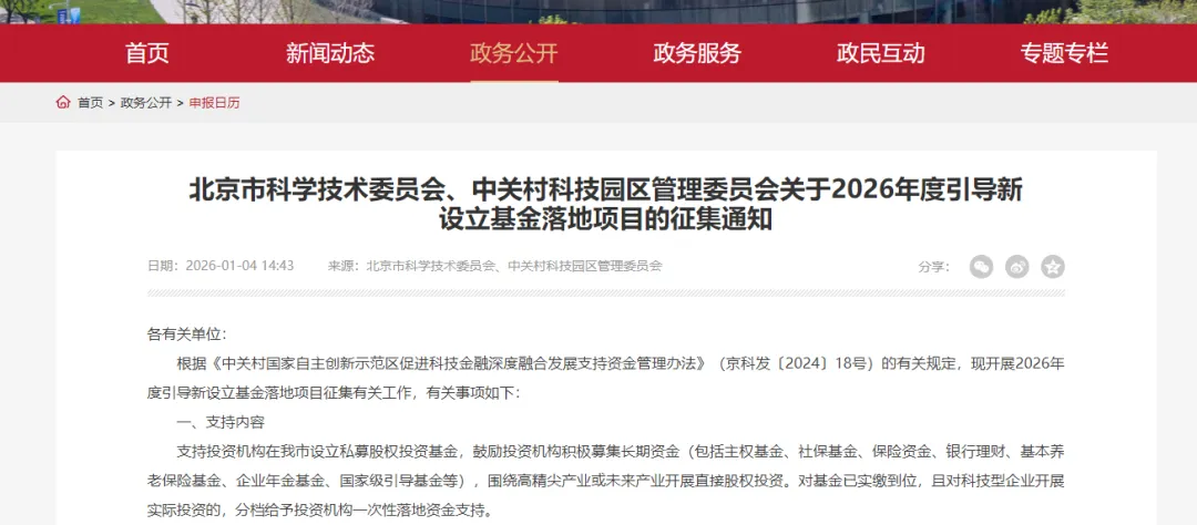 2026年初,北京市启动引导新设立基金落地项目征集,旨在吸引私募股权投资基金围绕高精尖产业或未来产业开展直接投资。