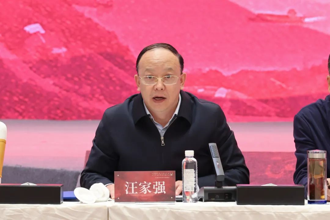 汪家强在致辞中指出,得天独厚的自然环境、不可复制的生物资源、古老精湛的酿酒技艺以及丰富悠久的酿酒文化,成就了贵州酱香白酒的原产地和主产区优势。贵州省委省政府高度重视白酒产业发展,深入贯彻落实新国发2号文件提出的“发挥原产地主产区优势,建设全国重要的白酒生产基地”,将做大做强白酒产业作为构建现代化产业体系,实施围绕“四新”主攻“四化”主战略的首要任务,加快建设全国重要的白酒生产基地和打造世界级白酒产业集群。希望与会的白酒企业家立足新周期、把握新机遇,构 筑新优势、实现新发展,严格遵守原产地原料、生产、质量、人文标准等,遵守原产地和主产区保护规划,建设全国重要的白酒生产基地,为引领行业发展贡献“贵州模式”,为打造世界产业集群贡献力量。