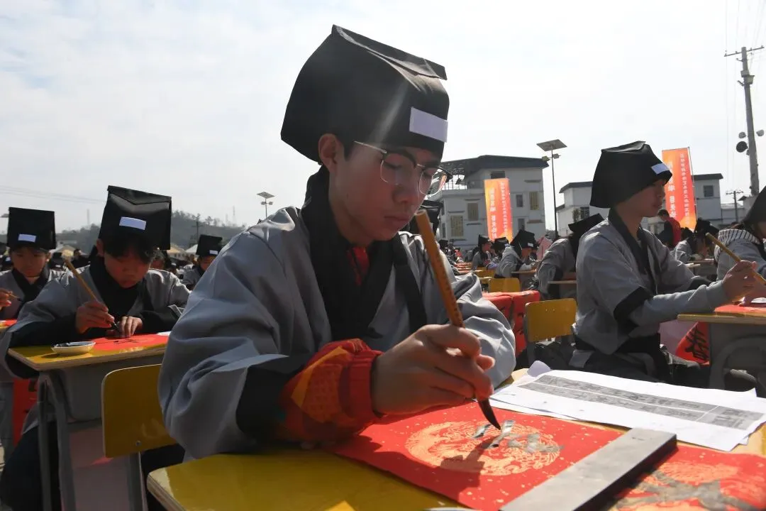 千名师生书写大赛备受关注。师生们围绕“新春祝福、乡村振兴、廉洁家风、红色传承”等主题挥毫泼墨,笔走龙蛇间勾勒出辞旧迎新的喜悦,传递出国泰民安的美好愿景。