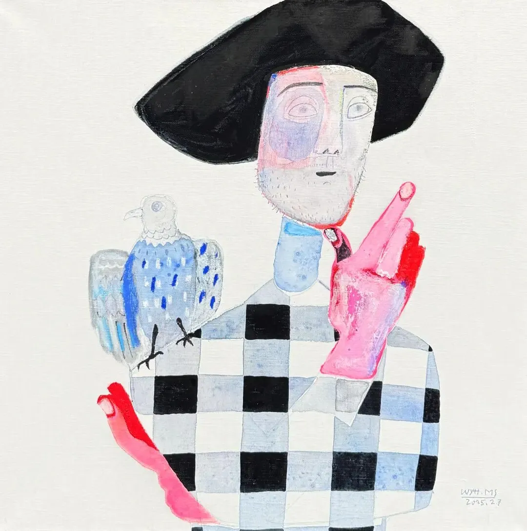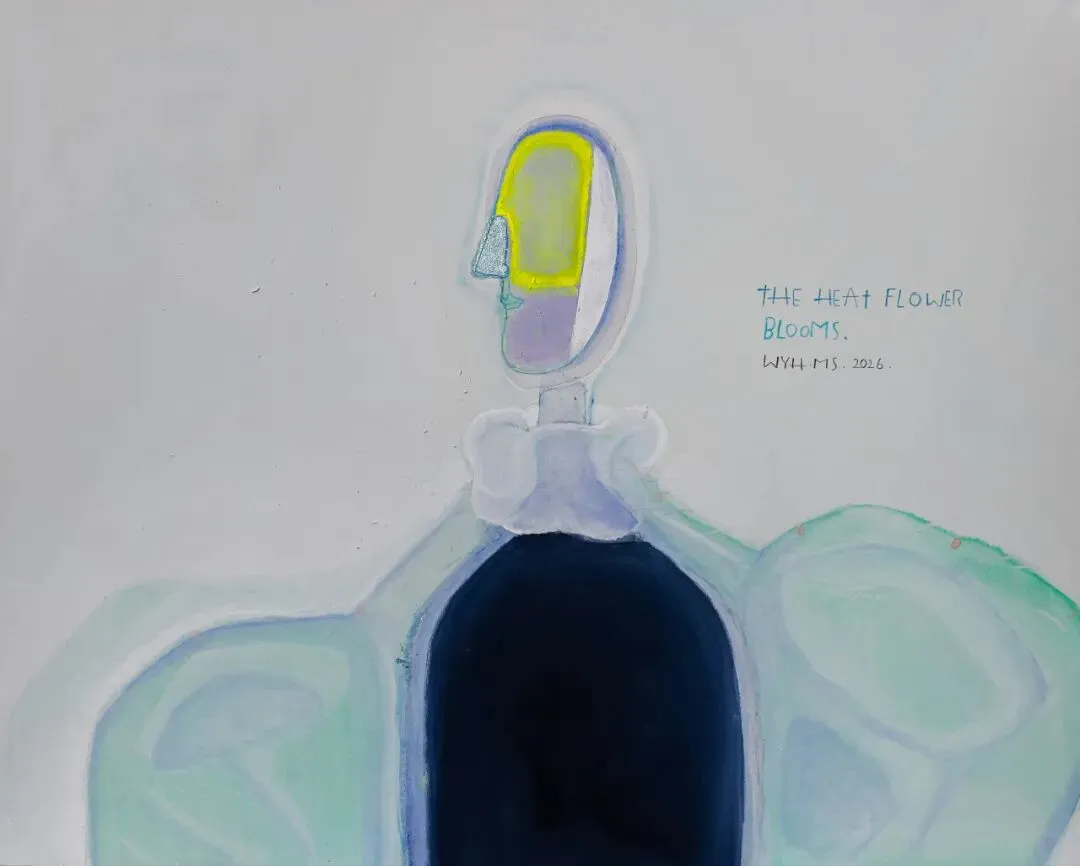 Wang Yuhua's works are actually concerned with the establishment of inner images. She thinks of more possibilities based on simple shapes, hoping to convey infinite information by reducing visual elements, and thus endows her works with meaningful charm full of philosophical thoughts. The artists often say, "The moment of distraction is closer to reality." She likes to paint dazing faces and also cherishes those moony moments in her life. If we think of our heart as a container, we have to empty it before we can hold something new. When there are not many ideas about "ourselves" inside, perhaps we can break through more limitations, accommodate the occurrence of higher levels of things, and truly accept and coexist with everything to feel the infinite beauty in the flow of life.