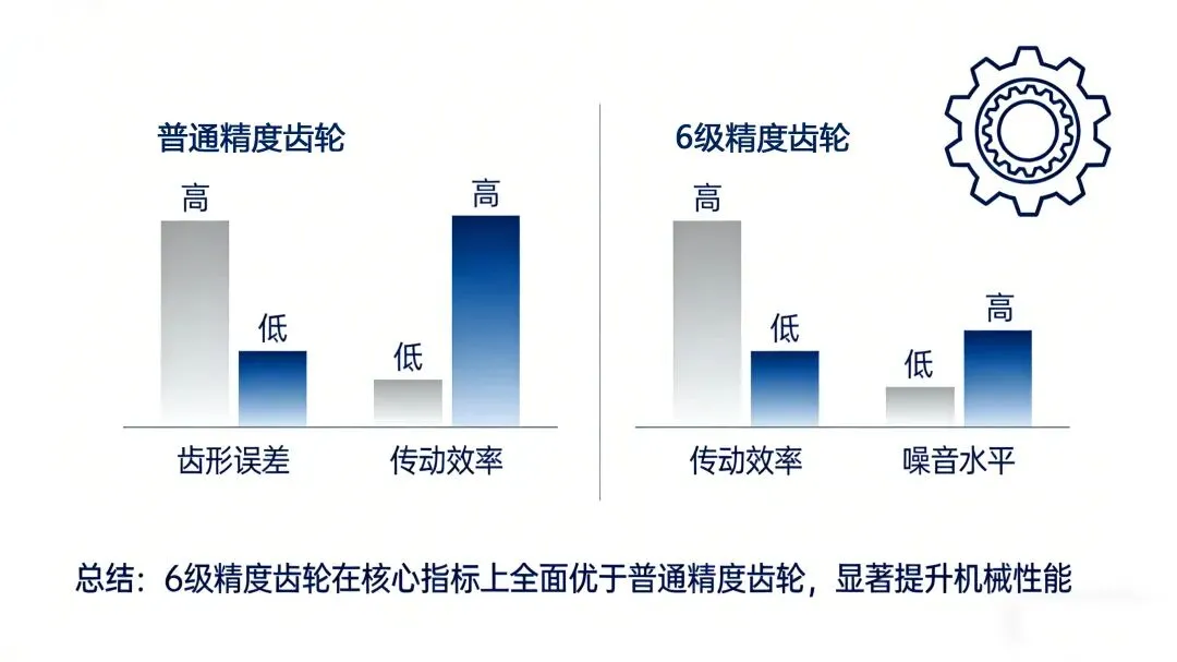 相较于普通精度齿轮,6 级精度齿轮的齿形误差、齿向误差更小,传动效率提升15% 以上,噪音降低 20 分贝,能完美适配高转速、低噪音的高端装备需求。未来,无法达到 6 级及以上精度的加工设备,将逐步被排除在高端供应链之外。