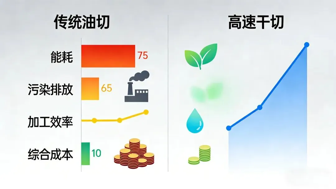 在 “双碳” 目标引领下,绿色生产已成为制造业发展的硬性要求。工信部明确提出要推广清洁高效的生产工艺,加快淘汰高污染、高能耗的落后设备(中华人民共和国工业和信息化部)。传统油切滚齿工艺因产生大量废油、废气,污染环境且处理成本高,已不符合绿色发展趋势。