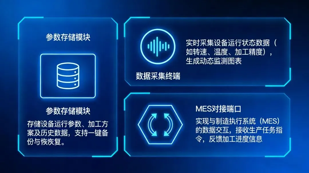 智能化设备的核心在于数控系统和数据处理能力。选型时需确认数控系统是否支持多场景加工参数存储 —— 至少可存储 50 组以上常用参数,满足多品种快速换型需求;同时要具备数据采集与分析功能,能实时监控加工过程中的转速、进给量、精度偏差等关键数据,为生产优化提供支撑。