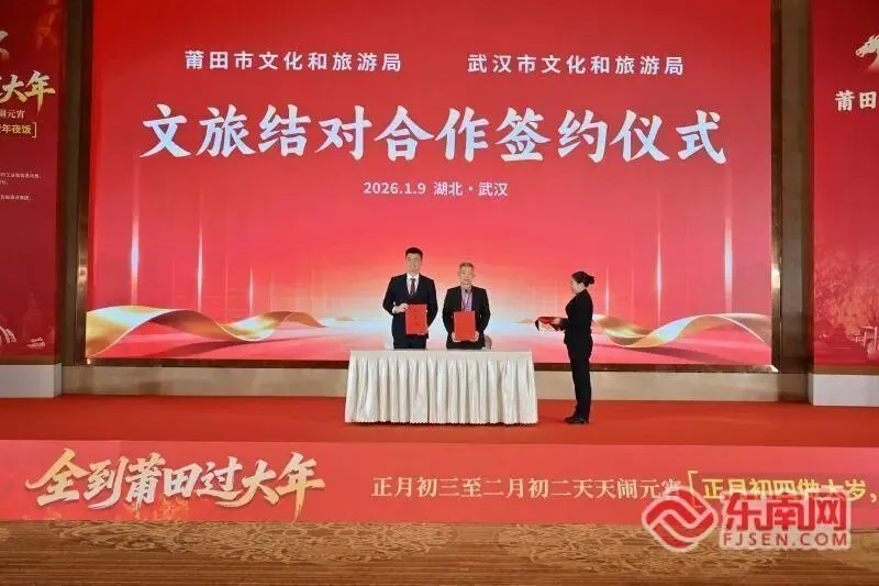 莆田市文化和旅游局与武汉市文化和旅游局签署文旅战略合作框架协议,双方将以妈祖文化与荆楚文化为纽带,开展文化论坛、非遗互展、旅游市场联合推广等常态化合作,共享旅游服务标准和管理经验,推出两地特色主题旅游产品,实现客源互送、市场共拓。汉口里控股有限公司与仙游县九鲤湖风景区建设管理委员会签署文化交流合作框架协议,将共同设计串联武汉园博园景区与九鲤湖景区的跨区域精品旅游线路,整合武汉园博园景区“园林文化”与九鲤湖“祈梦文化”核心元素,合作开发具有双重文化辨识度、高附加值与市场竞争力的特色文创产品、旅游纪念品,互办文化展演活动,推动区域文旅市场协同发展。