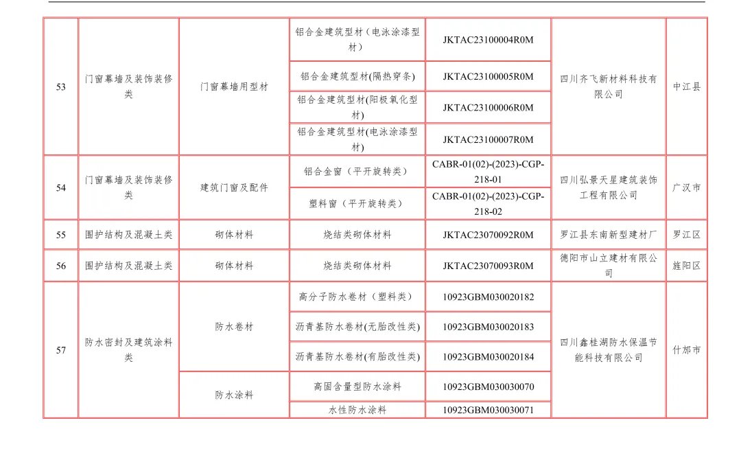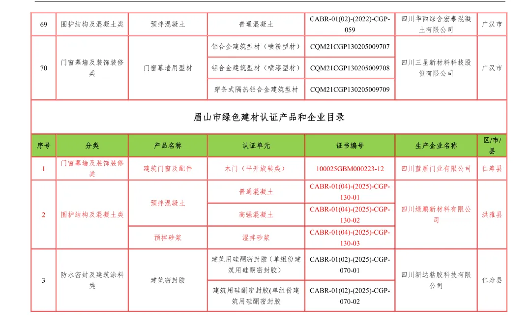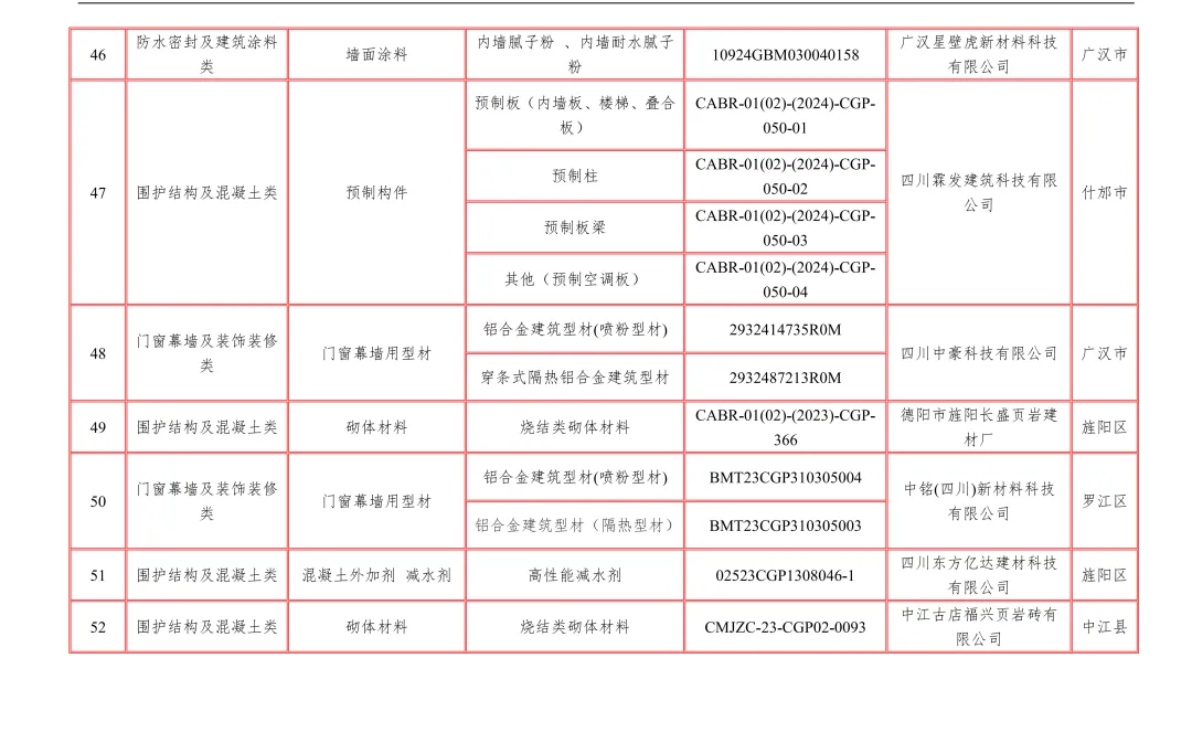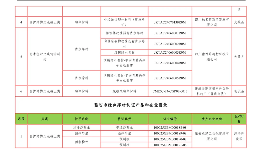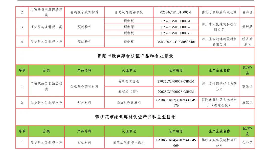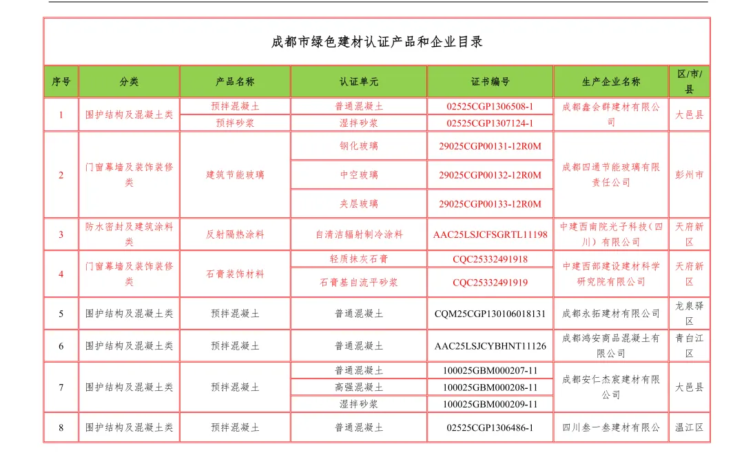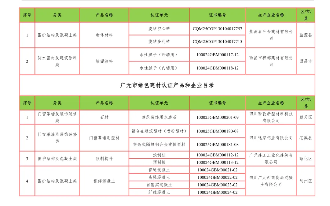 【行业资讯】四川省绿色建材认证产品和企业目录12月