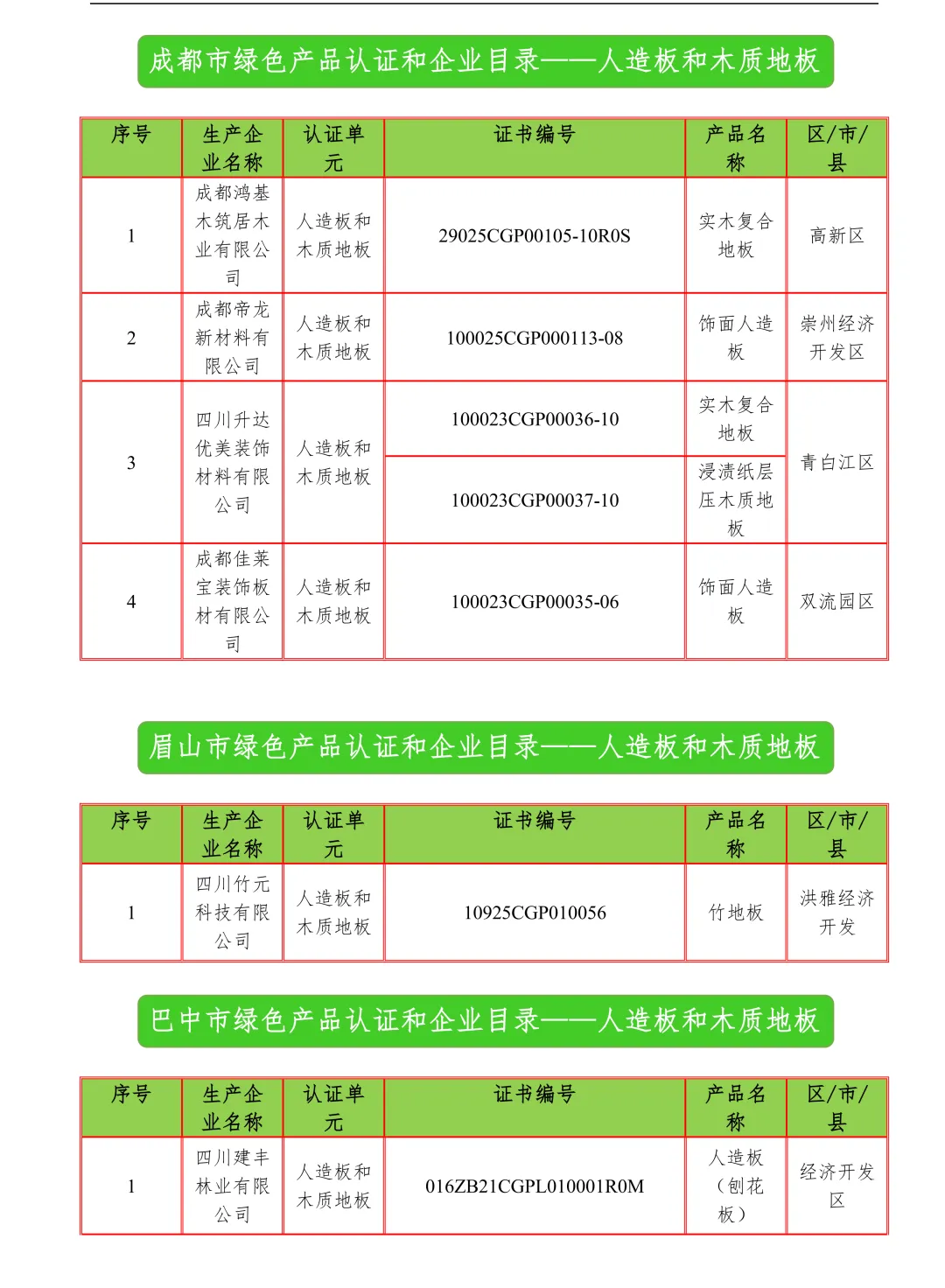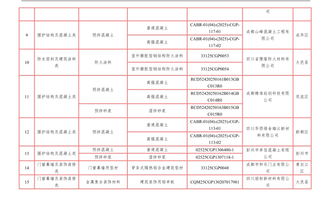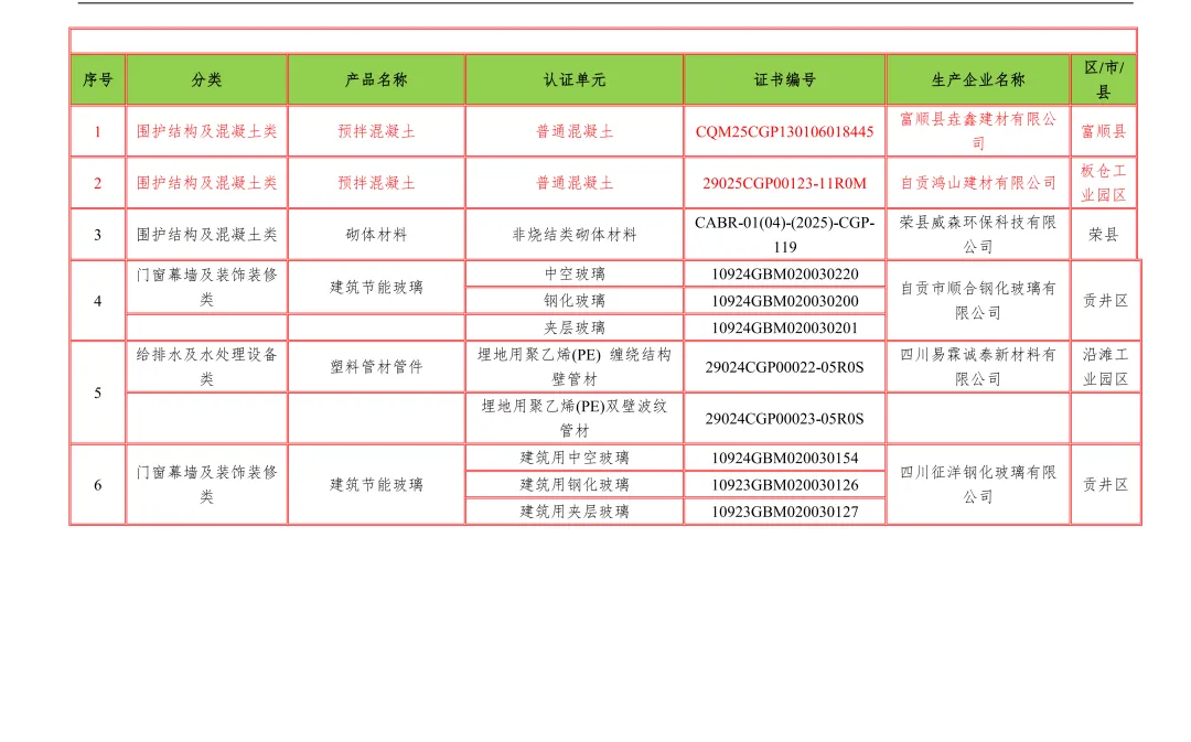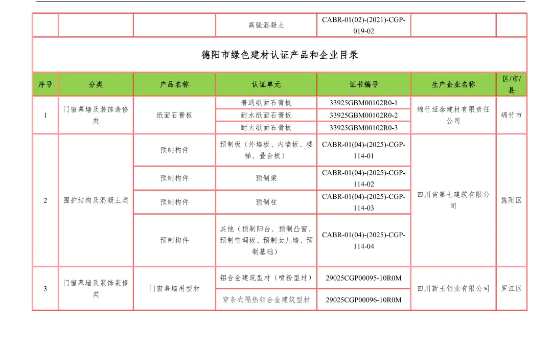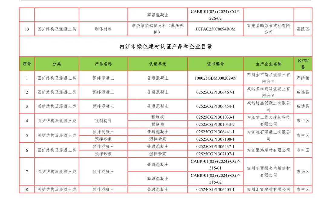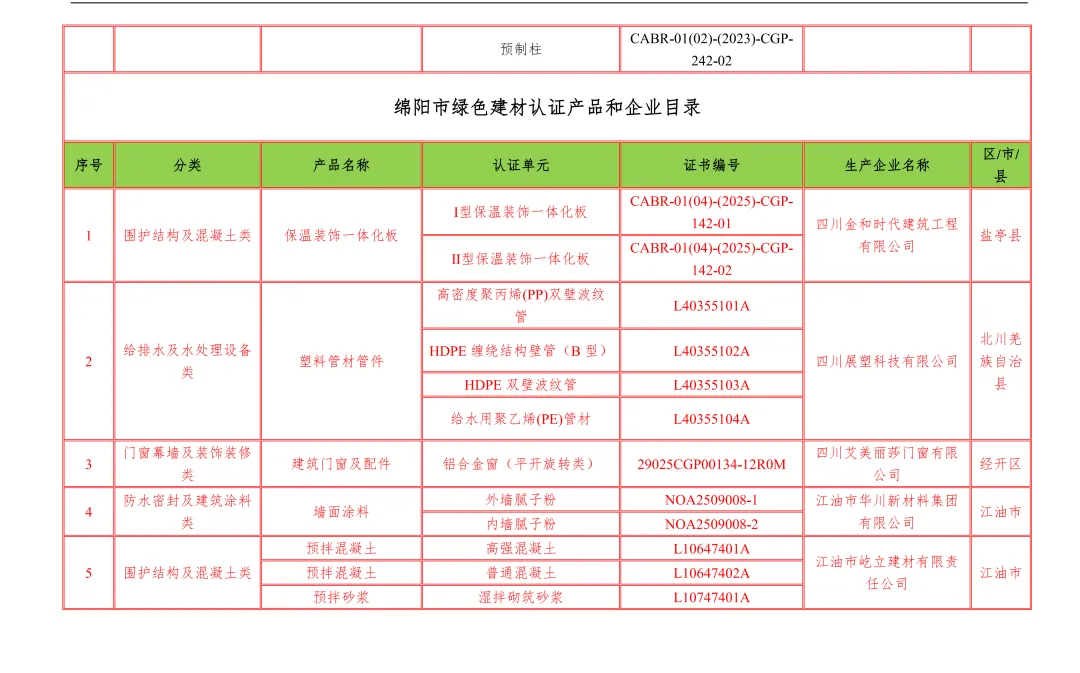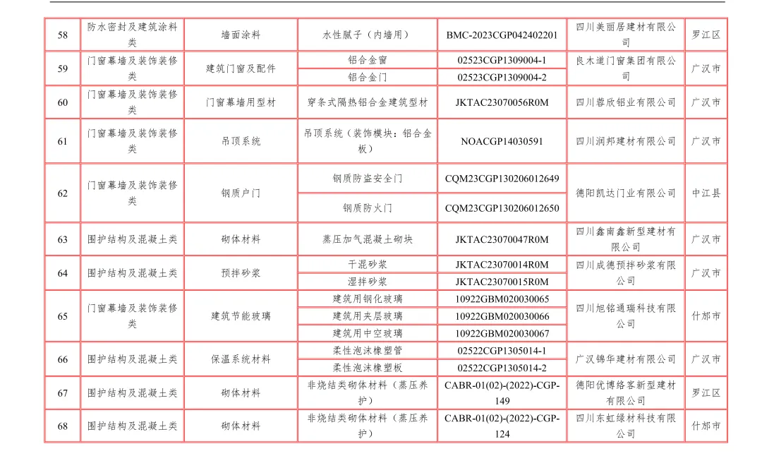 【行业资讯】四川省绿色建材认证产品和企业目录12月