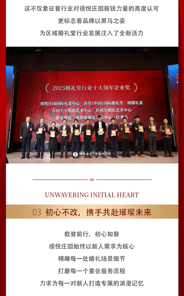 禧悦庄园|斩获 “2025 婚礼堂行业十大领军企业”奖