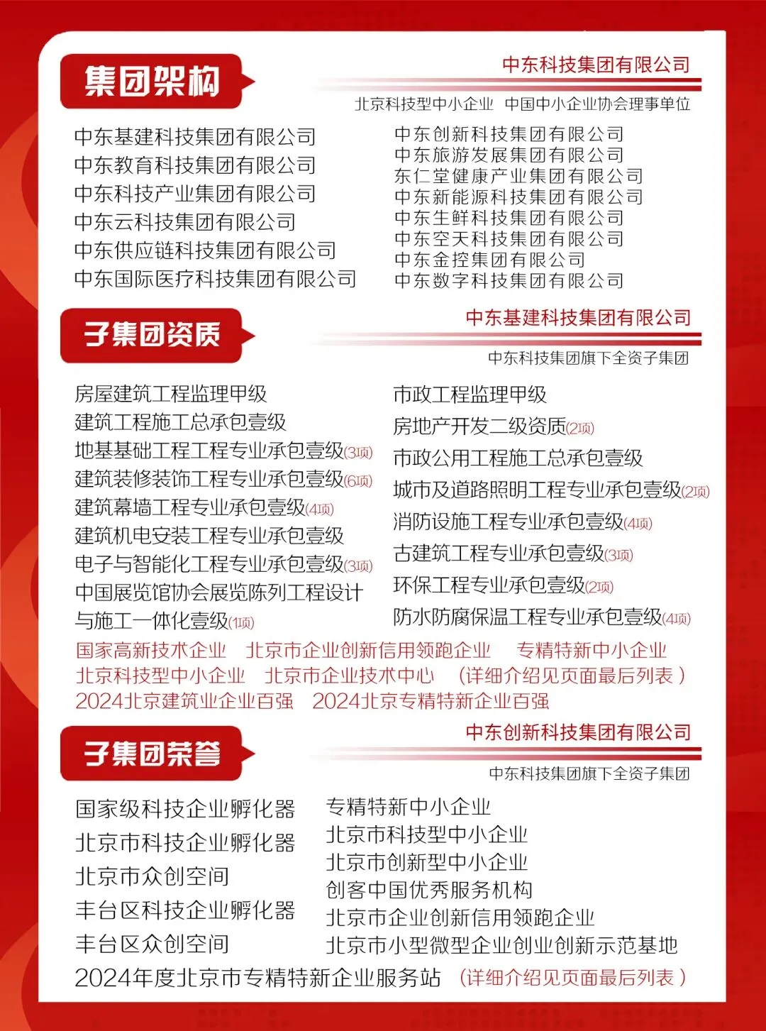 中东科技集团(简称中东集团)成立于2014年12月,总部位于北京市丰台区,是一家集数字基建、创新科技、供应链科技、大健康产业、新能源科技、公务航空、无人机科技、东东甄选、算力投资开发及服务,裸眼及全息数字科技研究运用、互联网+职业教育、互联网医疗、文旅产业、科技园投资运营等多业务板块于一体的复合型产业集团,设有15家二级全资子集团,在全国11个省市中的29个城市拥有60家全资子公司及海外迪拜与香港子公司。中东集团一直高度重视企业创新发展,加强与高校、科研院所协同创新,推动科技成果转化和产业化,持续开展优质中小企业培育工作。目前,已累计培育创新型中小企业3家、国家高新技术企业17家、省级企业技术中心企业2家、省级“专精特新”中小企业19家、科技型中小企业9家、北京市企业创新信用领跑企业7家、国家级科技企业孵化器1家。