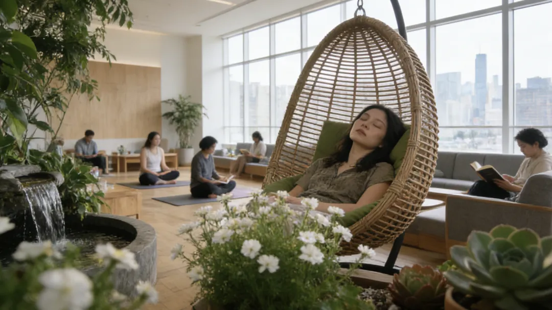 核心逻辑:在都市核心区打造便捷可达的“疗愈充电站”,如健康主题酒店、写字楼里的冥想空间、商场中的音疗舱。