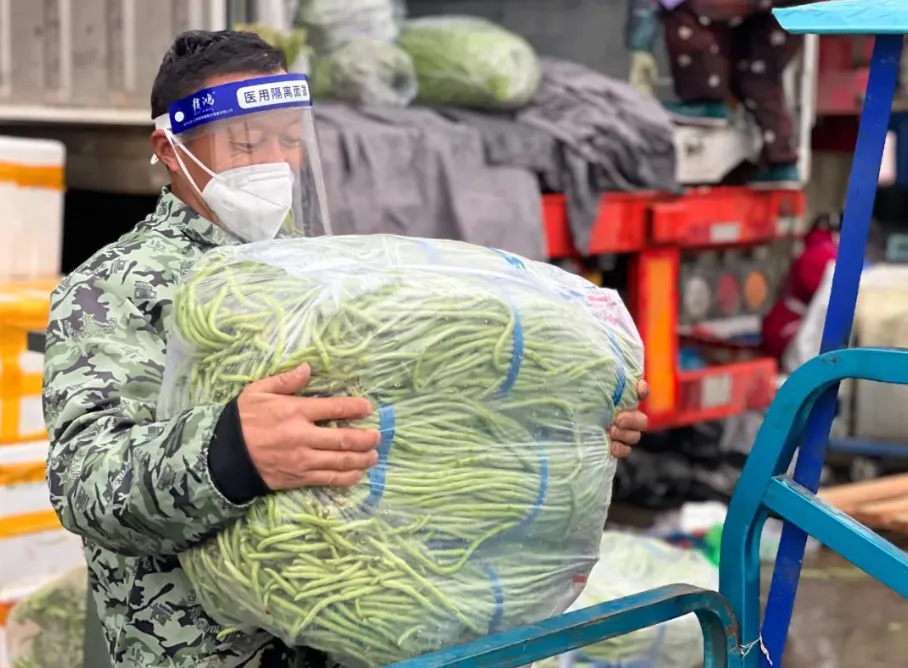 采取管控措施的几天里,周谷堆的经营人员和管理人员穿上防护服、戴上护目镜和N95口罩,坚持从事正常的经营活动,既保障合肥的蔬菜供应,又打赢了疫情歼灭战。