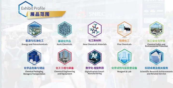 :展示石油炼制、天然气加工、煤化工等领域的先进技术、设备及产品,助力能源高效转化与清洁利用。 - 基础化学品
