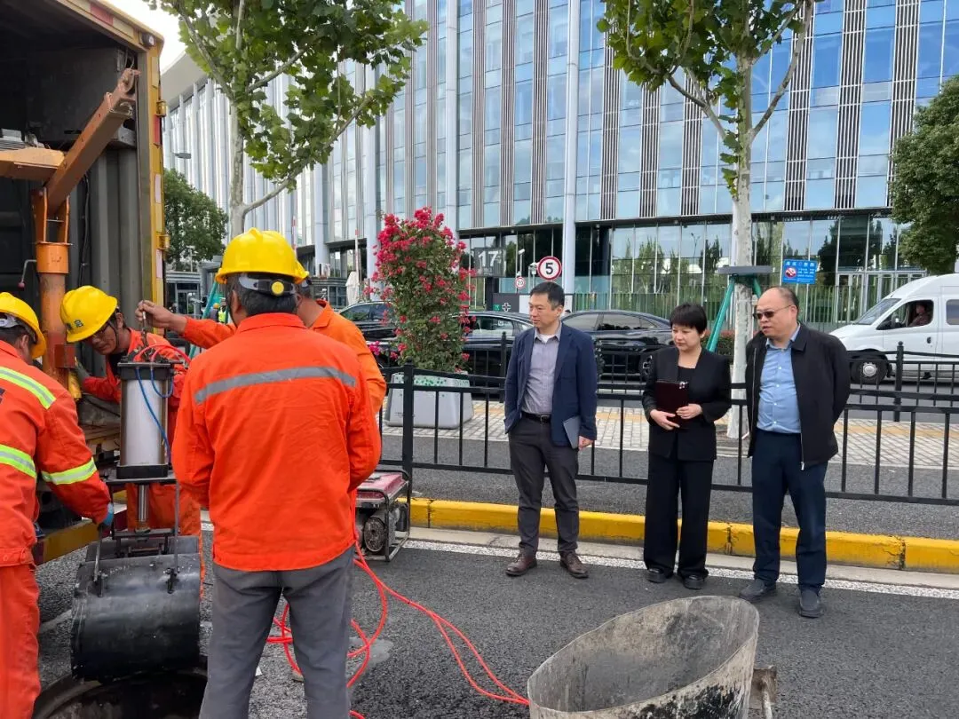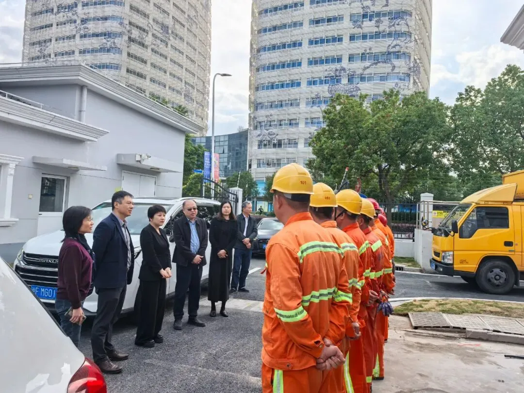 检查组一行对涞港路排水管道养护疏通、蟠龙路污水泵站运行、防汛突击队驻守保障等进行了现场检查,详细听取了青浦区关于进博会期间排水保障工作组织架构、运行机制、应急处置及值班值守安排等方面汇报。