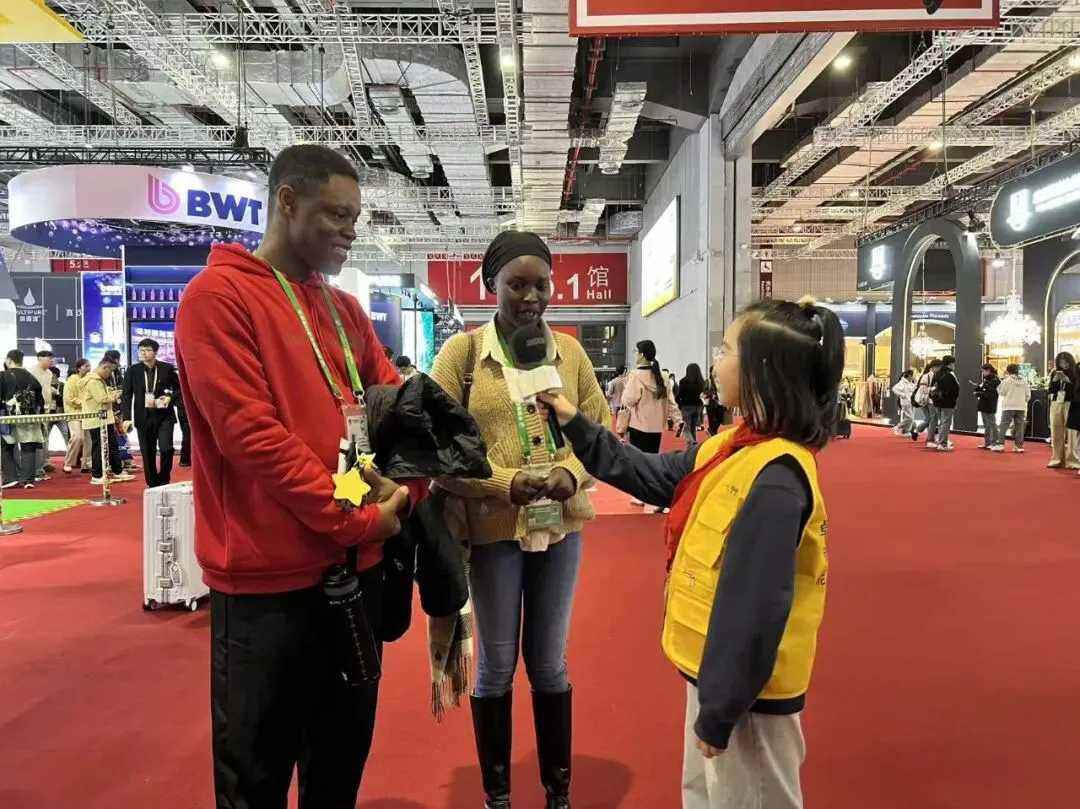 我这次用英语采访了一组外国游客,问他们是不是第一次来中国,第一次参加进博会。从他们口中,我发现不同国家的友人说话方式很不一样,还挺有趣的。