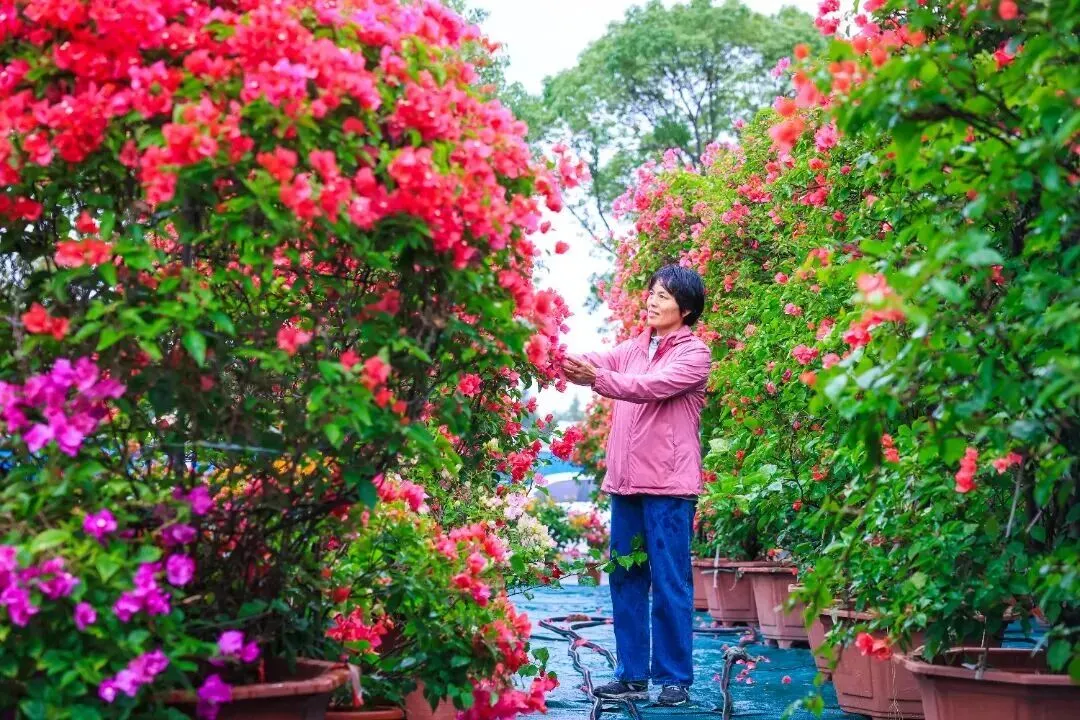 余冬丽告诉记者,三角梅养护需重点把控光照、浇水、修剪及施肥等关键环节,尤其是光照时间,充足的光照可以让植株生长良好,花多、花艳、花期长,反之易落叶衰枯。此次进博会布展和往年一样,工人提前半个月就着手工作,期间也会有专门的工人驻守现场养护三角梅,以保证它们呈现出最好的景观效果。