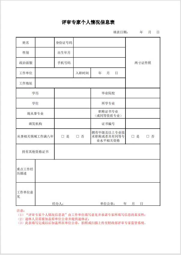 第七条 符合本办法第六条规定条件,自愿申请成为评审专家的人员(以下简称申请人),应当提供以下申请材料: