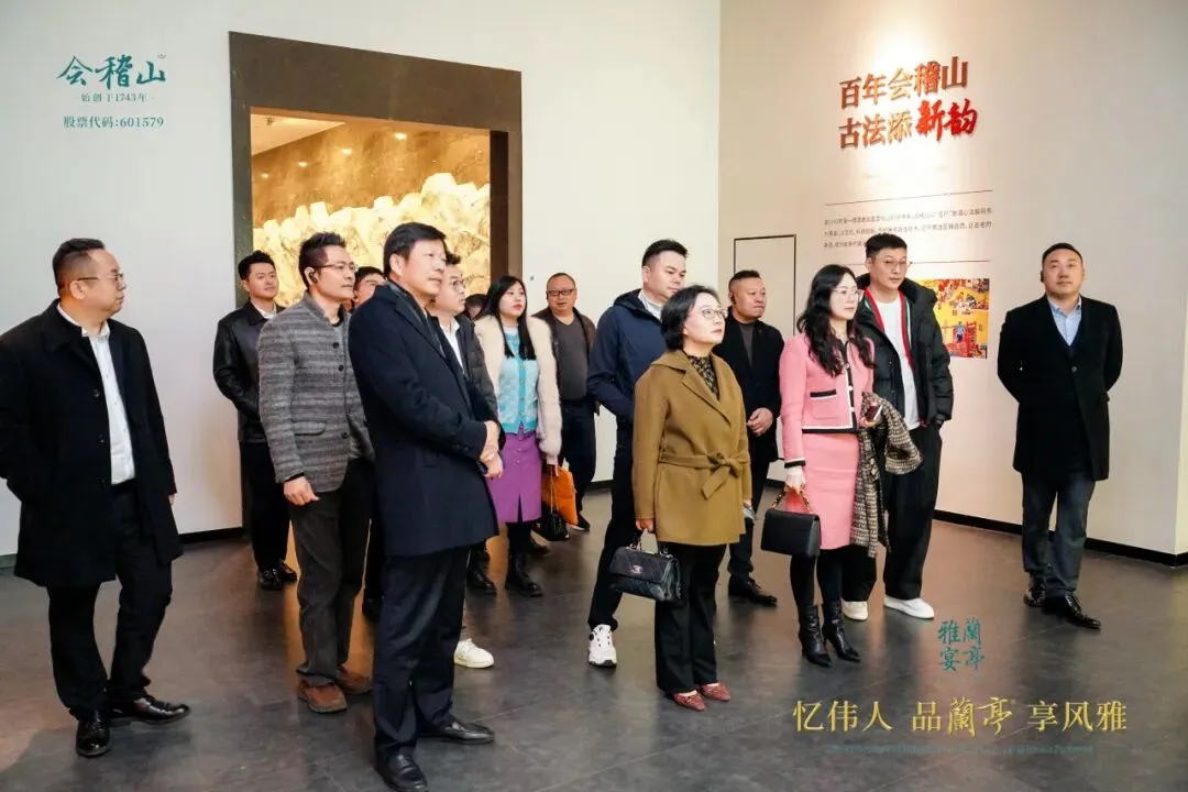 始创于1743年的会稽山,已走过二百八十余年无断代酿造历程。一代代匠人坚守古法,以手抵心,在岁月更迭中守护着黄酒酿造的活态基因。而作为企业高端品牌的兰亭国酒,既承袭了这份非遗酿造技艺,更以王羲之《兰亭集序》的风雅文脉为内核,打造品牌 IP,成为黄酒文化现代表达的典范。嘉宾们漫步展厅,见证古法酿造技艺与现代工艺的精妙碰撞,体悟百年酒企“守正创新”的发展密码。