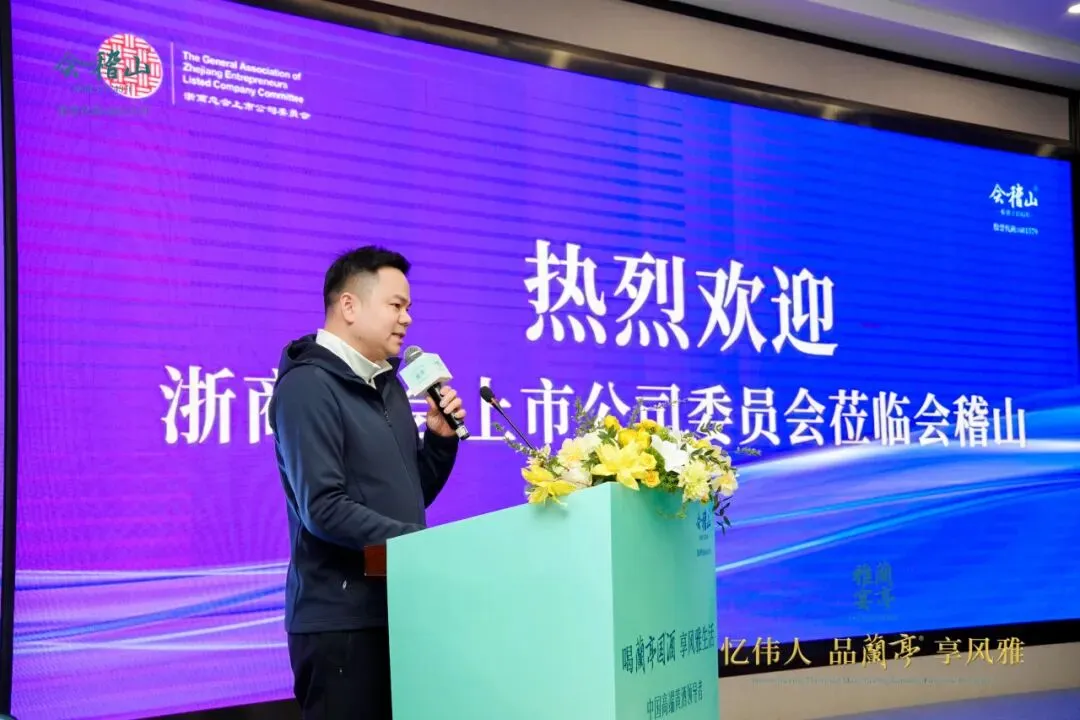 浙商总会上市公司委员会主席、海亮集团董事长王黎红致辞,表示会稽山三百年的匠心传承生动说明,深厚的文化底蕴能够通过坚守与创新,转化为澎湃的品牌动力与市场竞争力。她强调,兰亭不仅是绍兴的酒,更是浙江的酒、中国的酒,它凝聚着这片土地的精神与风骨。今天走过会稽山的酒香长廊,各位企业家不仅能感受到时间沉淀的温度,更能体悟到在坚守实业根基中勇立潮头、在传承文化血脉中开创未来的浙商品格。她期待今天的交流,能为大家打开更多携手合作的可能,共同书写浙商发展的新篇章。
