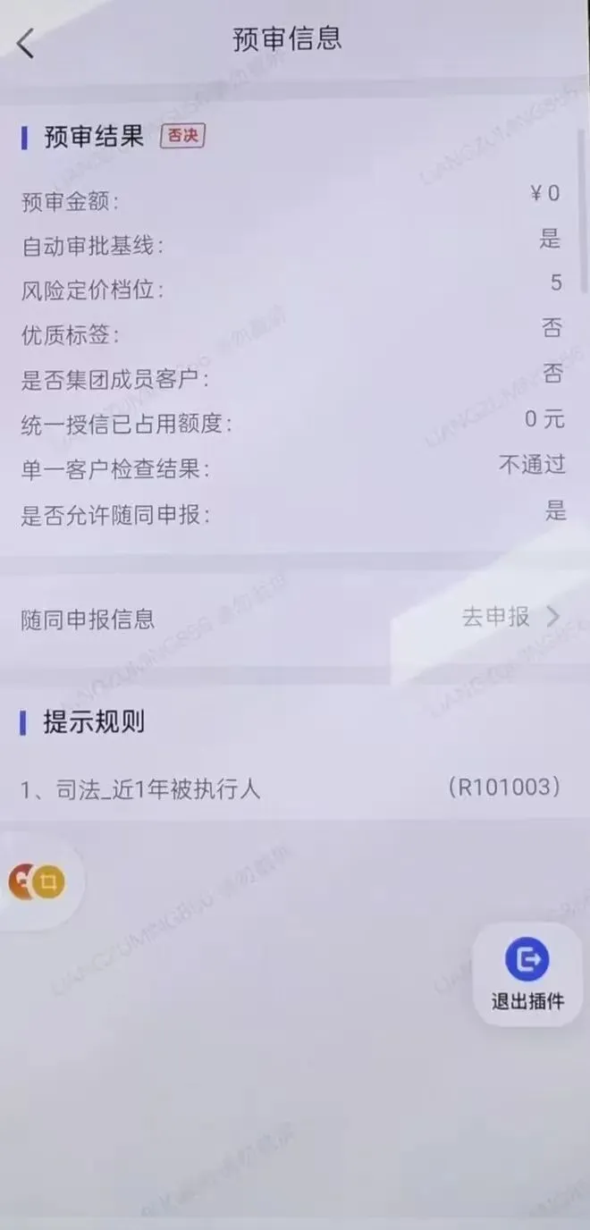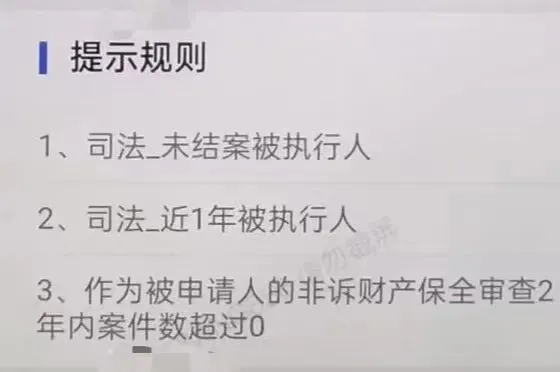 银行风控系统会预设司法相关预警规则(如“近1年被执行人”“未结案被执行人”“非诉财产保全案件数超0”),一旦企业触发任一规则,哪怕是财产保全被申请人这类非执行类记录,都会被系统自动判定为“高风险客户”,直接导致预审金额为0、单一客户检查不通过,连人工审核的机会都没有。这也是多数企业明明有稳定还款能力,却仍被银行拒贷的核心原因。