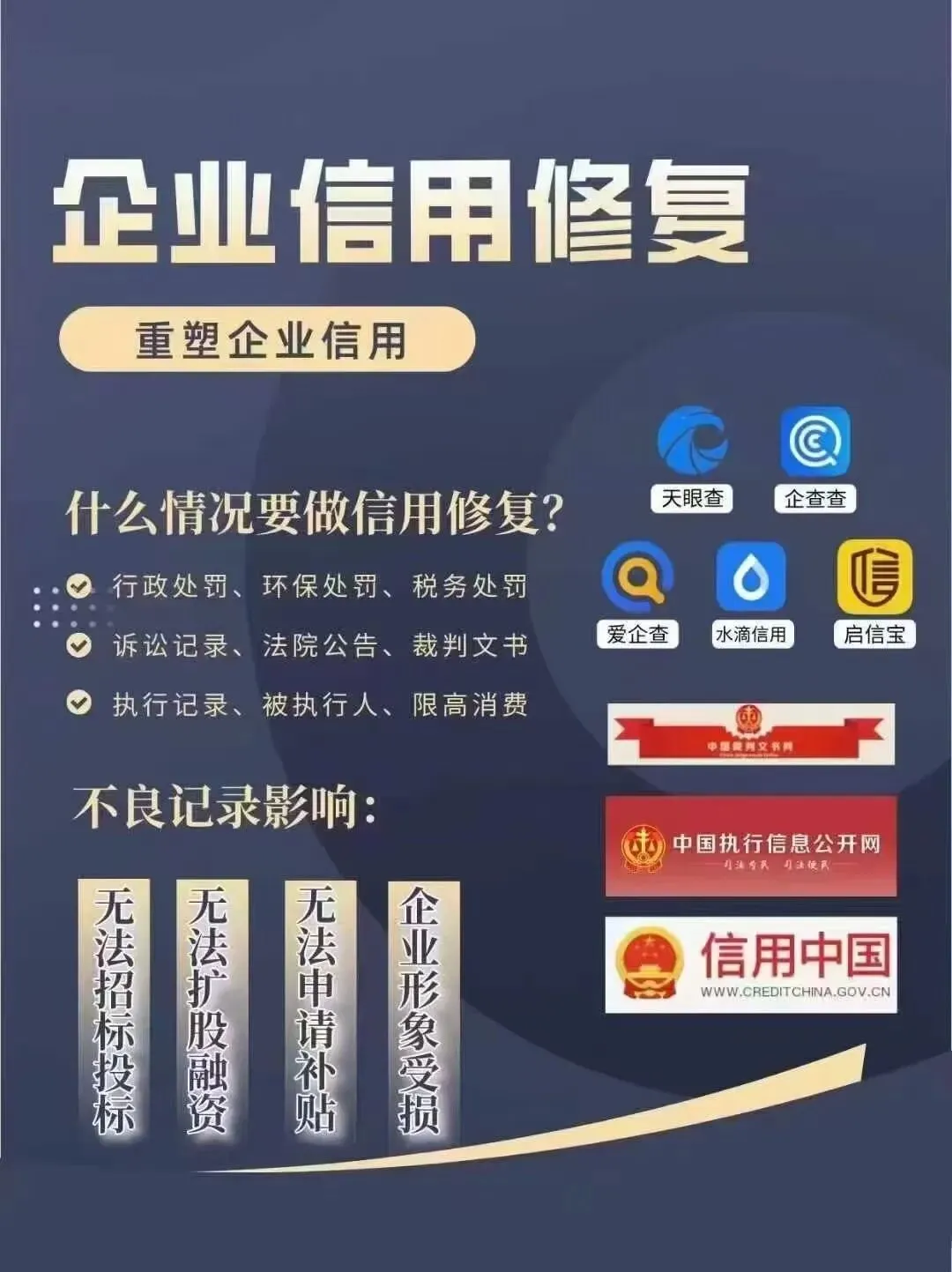 从信用风险前置防控,到信用瑕疵合规修复,再到健康信用体系长效构建,一站式助力企业稳健经营、个人重塑信用价值。