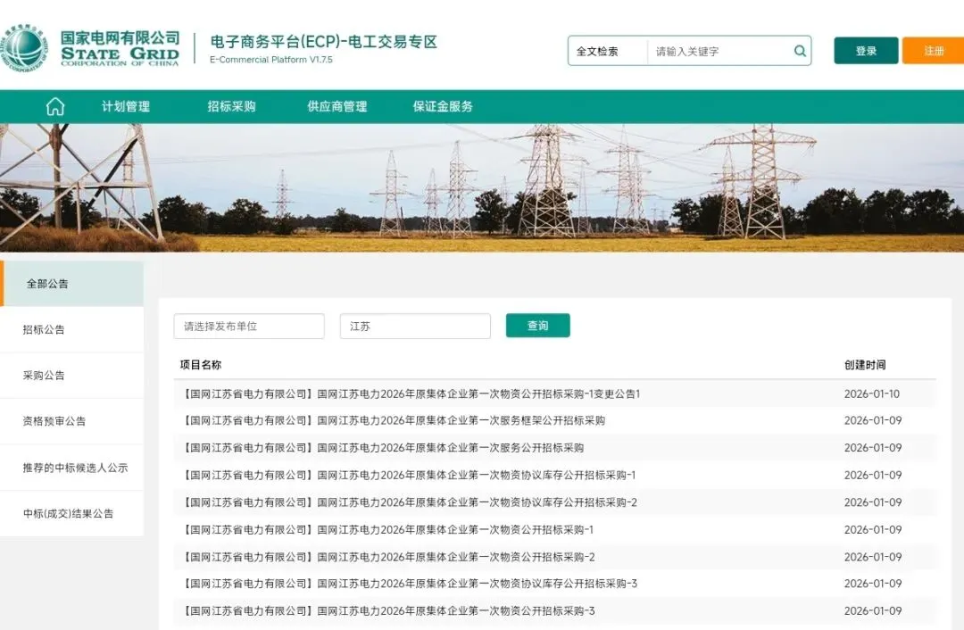 国网江苏电力2026年原集体企业第一次物资公开招标采购-3招标公告