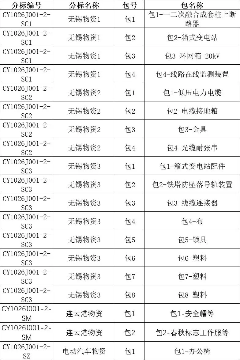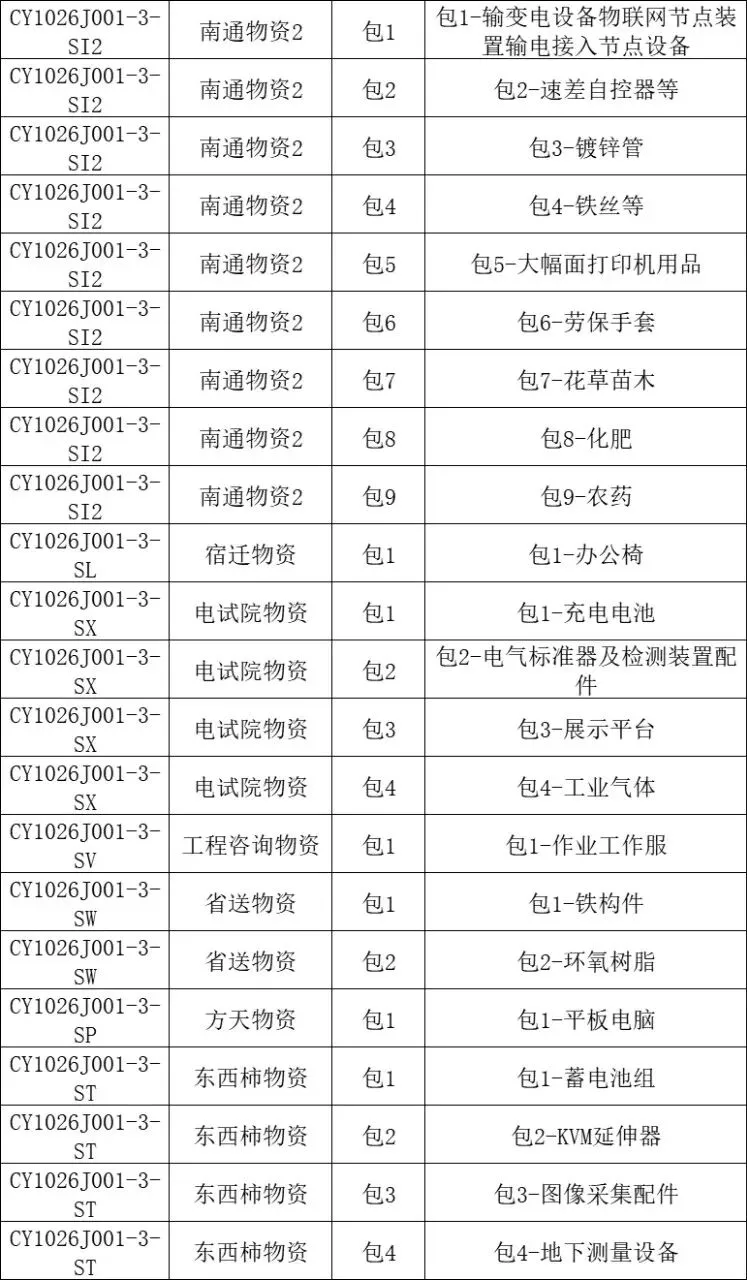 采购项目名称 国网江苏电力2026年原集体企业第一次物资公开招标采购