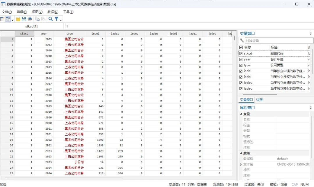 CNDD-0048 上市公司数字经济创新数据(附Stata处理代码,1990-2024年)及学术论文应用