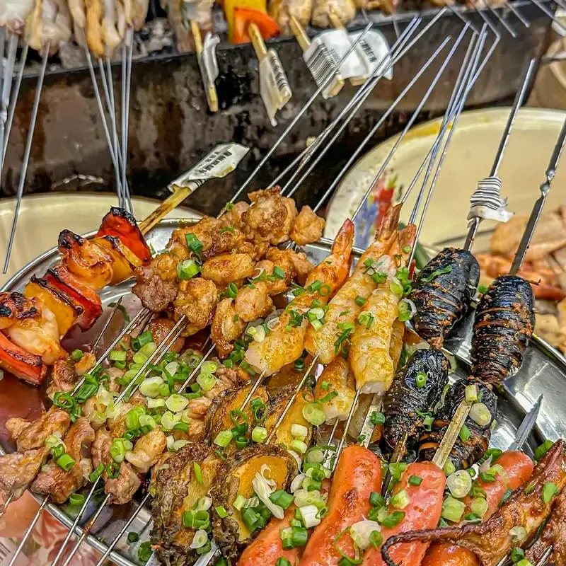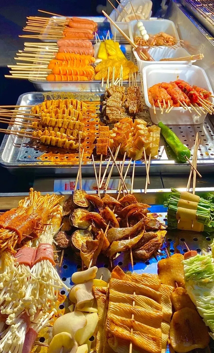 25种特色美食,火爆鱿鱼、旋风薯塔、现榨柳橙汁、大面筋、拉丝热狗、小肉串、大肉串和热干面等。快来品尝!