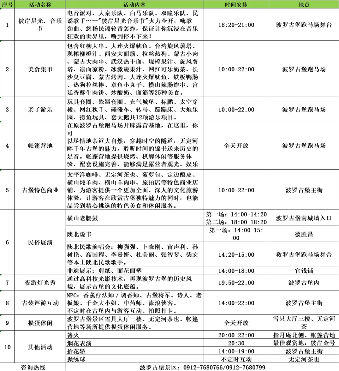 电音派对、大秦乐队、白马乐队、双瞳乐队及民谣歌手,嗨歌劲曲与民谣交织,高科技光影重塑的波罗古堡风貌。