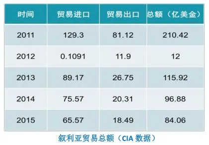 中国海关数据,2016年中叙双边贸易额9.18亿美元,从中国进口9.15亿美元,同比降低10.5%。