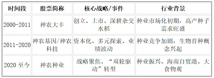 神农种业的历史沿革,是中国种业市场化、资本化和政策化进程的一个缩影。公司的发展可以划分为三个主要阶段:创立与快速发展期(2000-2011)、资本化与多元探索期(2011-2020)、战略聚焦与转型期(2020年至今)。