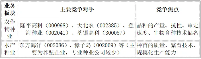 品种迭代失败风险: 种业的核心是品种。如果公司在水稻、油菜等主粮品种上不能及时推出具有竞争力的升级换代产品,或在水产种业上投入巨大但育种失败,将导致核心业务竞争力彻底丧失。
