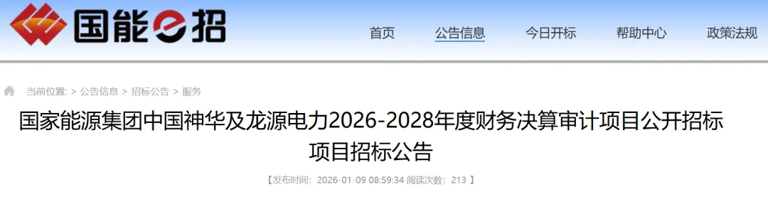 本招标项目名称为:国家能源集团中国神华及龙源电力2026-2028年度财务决算审计项目公开招标,项目招标编号为:CEZB260200161,招标人为国家能源投资集团有限责任公司,项目单位为:国家能源投资集团有限责任公司,资金来源为自筹。招标代理机构为国家能源集团国际工程咨询有限公司。本项目已具备招标条件,现对该项目进行国内资格后审公开招标。