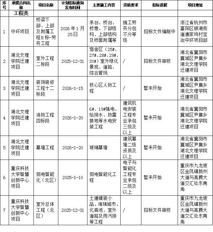 公司拟于2026年1月份第2周招标计划如下(具体以中国五矿电商平台发布为准),提醒您关注五矿电商平台招标信息,诚邀您的参与。