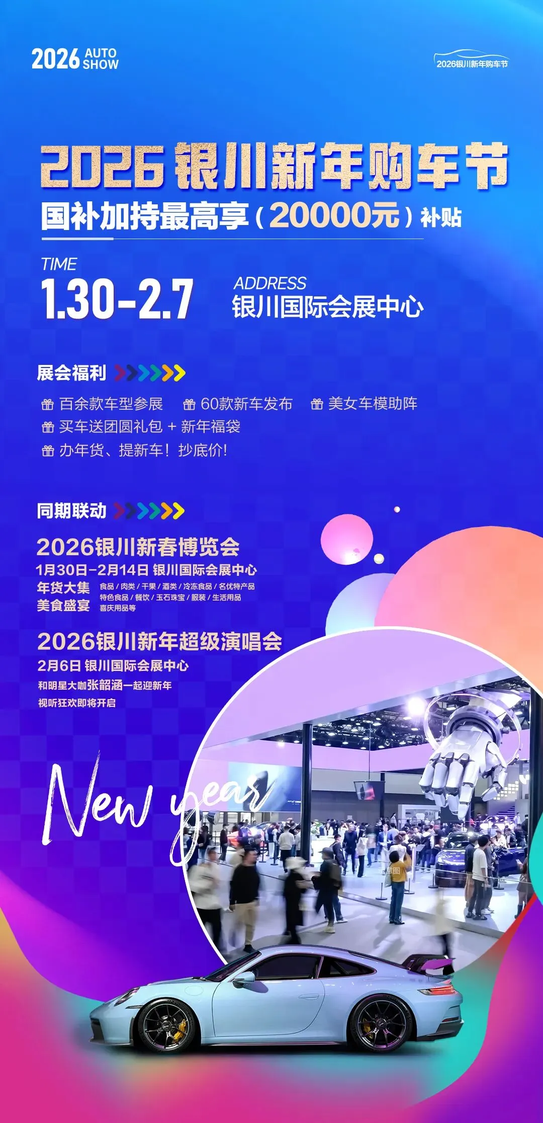 与年货博览会同期,2026银川新春购车节将联袂登场。抓住年末购车最佳时机,众多汽车品牌将齐聚一堂,推出年度极具竞争力的促销政策。现场订车即可尊享 “团圆礼包+新年福袋” 的双重新春贺礼,让您在置办年货的同时,也能为家庭添置“新年大件”,以崭新的姿态迎接新春旅程,寓意新年一路坦途,生活品质再升级。