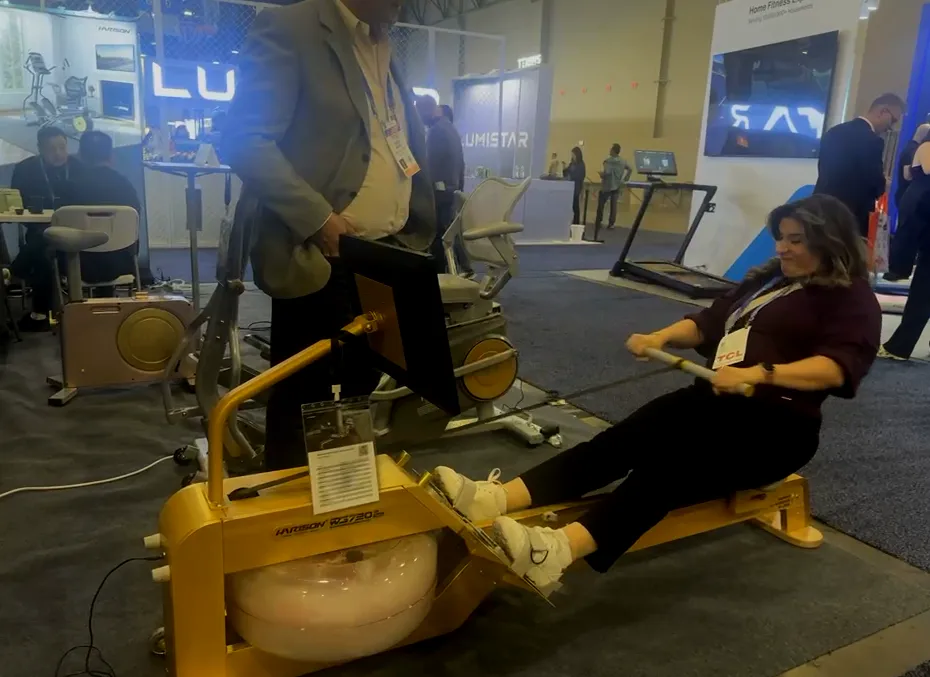 不少客户在体验W3720TrackEco划船机时,对21.5英寸全触控智能屏幕的流畅操作和长轨道的顺滑运动感赞不绝口。针对办公族设计的HR-B15Eco桌式健身车更是成为 “网红单品”,体验者一边感受人体工学设计带来的舒适感,一边向工作人员了解 HRISON APP 的数据同步功能与轻运动计划制定方法。