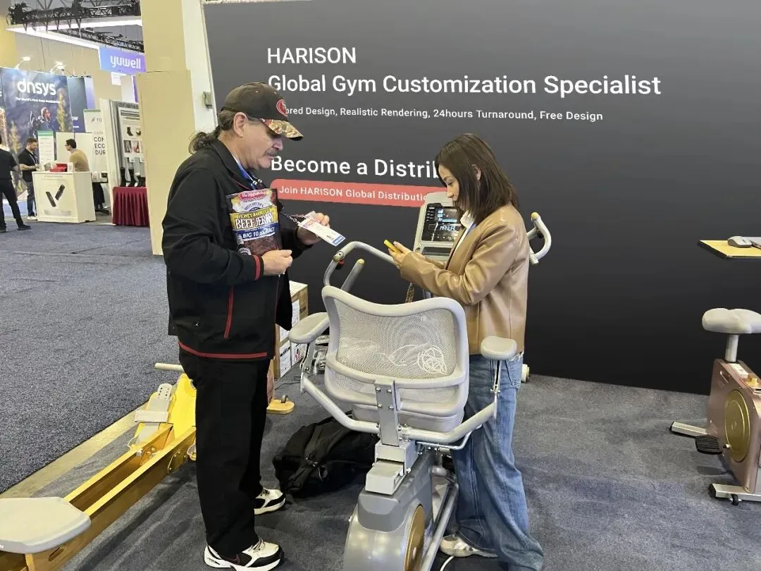 HR-343Eco电动冲浪机的模拟冲浪场景让客户直呼新奇,不少运动爱好者反复体验垂直波、横向摇摆两种模式,详细咨询吸盘底座的稳定性与电磁力阻力调节的精准度。而搭载第6代伺服电机的 30415智能数字力量站,凭借毫秒级响应速度和300+健身动作覆盖能力,吸引了大量专业健身机构采购商驻足,深入询问电机性能、配件拓展及替代传统力量器械的性价比优势。
