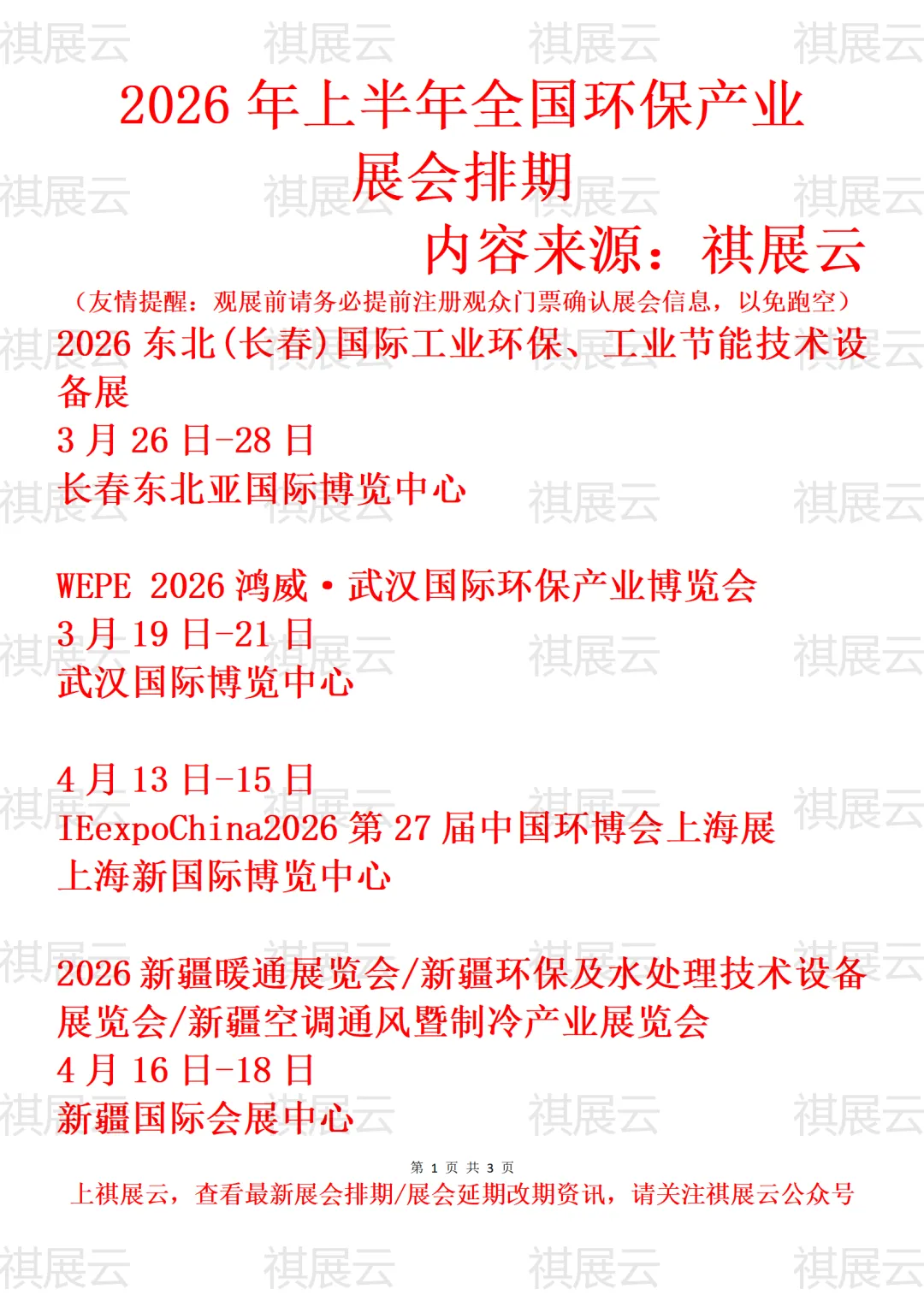 会展资讯丨2026年3-4月份全国环保产业展会排期