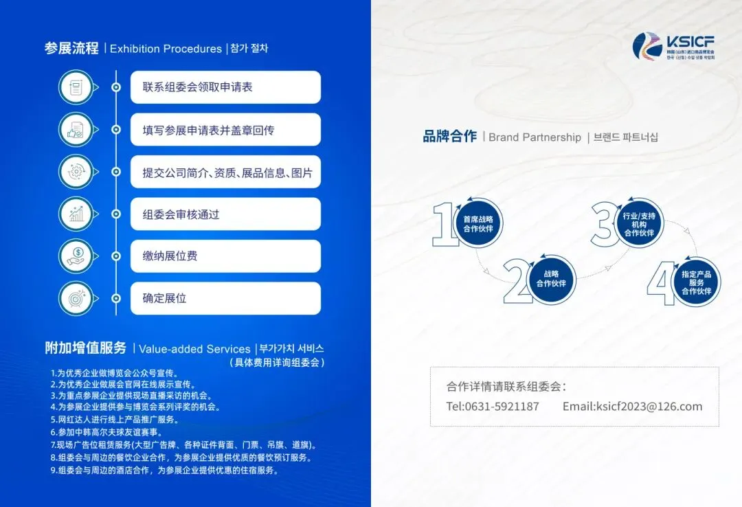 第六届韩博会筹备工作已全面启动,展位与合作名额有序开放。参展咨询:0631-5928797 / 5921187参观/采购商报名:0631-5928775品牌与商务合作:0631-5924187官方邮箱:ksicf2023@163.com2026年5月,让我们相约威海。 在黄海之滨,共话合作,共享机遇,共赢未来。我们期待,与您携手,书写中韩经贸往来的下一章精彩。第六届韩国(山东)进口商品博览会组委会诚邀全球伙伴,共襄盛举,共创辉煌。胡女士 18563101623,毕先生 15098100920韩博会,一个中韩经贸交流、文明互鉴的友谊舞台。