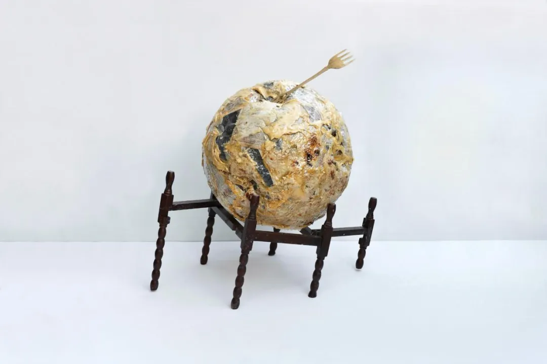 面团,中英上世纪老报纸,桌腿,黄铜,树脂,2025