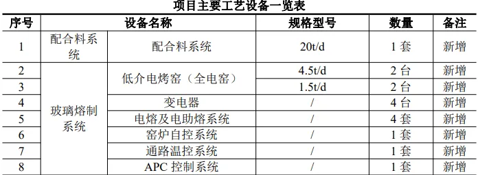 项目主要设备清单见下表。