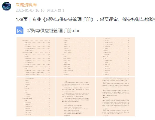 一本系统性的《采购与供应链管理手册》是保障项目物资供应、控制成本与风险的核心工具。它不仅涵盖项目采购的目标、原则与基本流程,更明确了从采购规划到现场管理的全周期执行标准。通过细化作业指导书与组织职责,手册为采购团队提供了清晰的操作框架,确保采购活动始终与项目目标协同,成为项目成功的重要支撑。