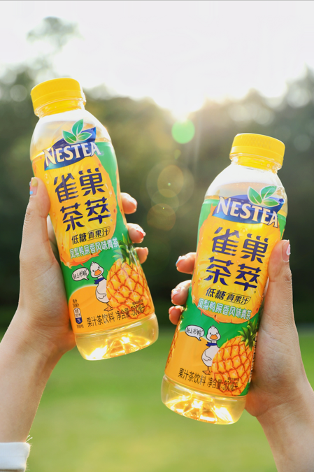 雀巢茶萃推出市面首款凤梨搭配鸭屎香的风味茶饮料,清新低糖,含真实果汁,使用潮州凤凰单枞乌龙茶,自带兰花香,淡雅清新,果汁含量不低于5%,共有两种规格,瓶装售价500mL/瓶/3.5元、包装售价250mL/包/2元。