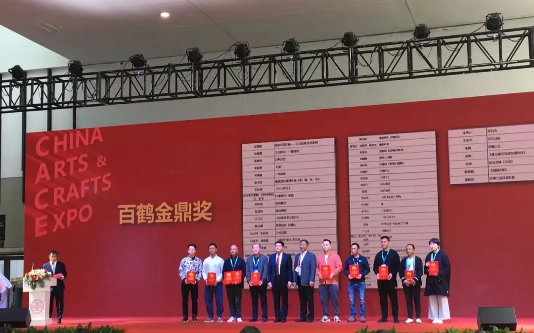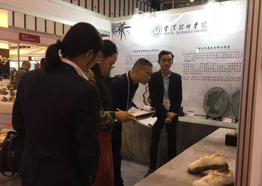 11月7日,由中国轻工业联合会主办,中国工艺美术协会、中国轻工珠宝首饰中心、中国陶瓷工业协会等七家协会联合举办的首届“2019中国工艺美术博览会(CACE)”在南京国际博览中心开幕。本次展览规模庞大,参展企业、大专院校等单位达1200个,展品共6万件,云集荟萃上百位中国工艺美术大师等全国各地的精品力作。由云浮技师学院选送的《人生旅途》等6件作品荣获大赛“百鹤新锐奖”。