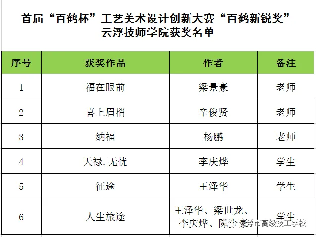 云浮技师学院6件作品获“百鹤新锐奖”