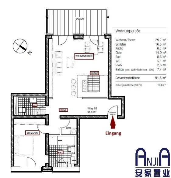 Endenergiebedarf 最终能源需求 | 89.8 kWh/(m²*a) |