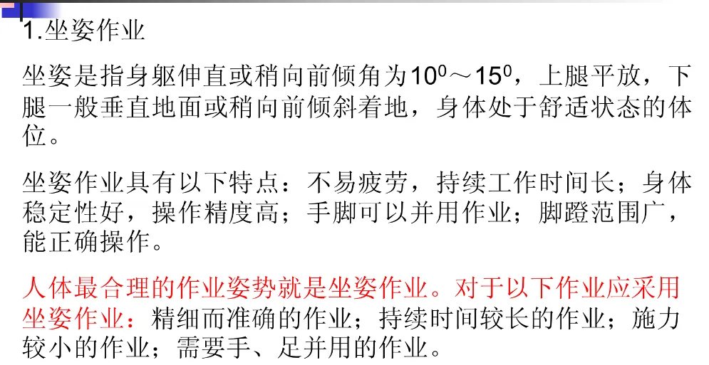 坐立作业还是站立作业以及合适的作业范围
